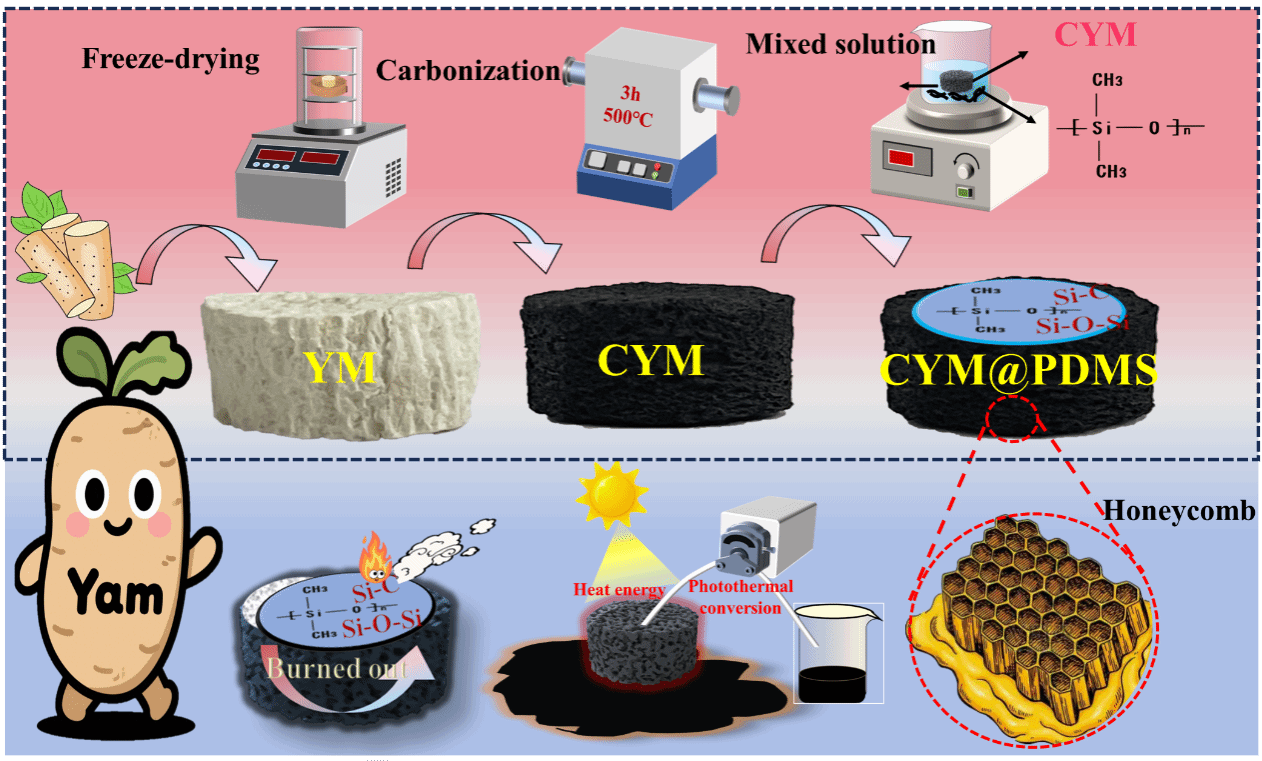 近日,我校化学化工学院高助威副教授团队在油水分离材料领域取得重要进展,成功研发出生物质山药基三维多孔光热油水分离材料 CYM@PDMS。该材料创新性地以可再生农业生物质山药为原料,通过仿生改性与光热转换技术融合,解决了传统方法处理高粘度油效率低、能耗高、材料不可持续的核心痛点,实现了对高粘度原油的高效且连续的回收,为应对海上原油泄漏以及生活废油的回收等挑战提供了全新的解决方案。创新点一:创新复合光热碳基材料设计,...