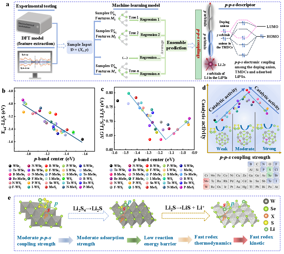 近日,我校材料科学与工程学院邓意达/李运勇教授团队在锂硫电池关键催化机理研究方面取得重要进展。硫电池因其超高理论质量能量密度(2600 Wh/kg)和体积能量密度(2800 Wh/L),在低空无人机、海洋装备等对空间和重量高度敏感的应用领域具有重要发展潜力。然而,多硫化锂转化动力学缓慢、反应能垒高及穿梭效应等问题,严重制约了锂硫电池的实际应用。发展高效催化材料、加速硫氧化还原反应,是该领域亟需突破的关键科学问题。针对上述挑战,...