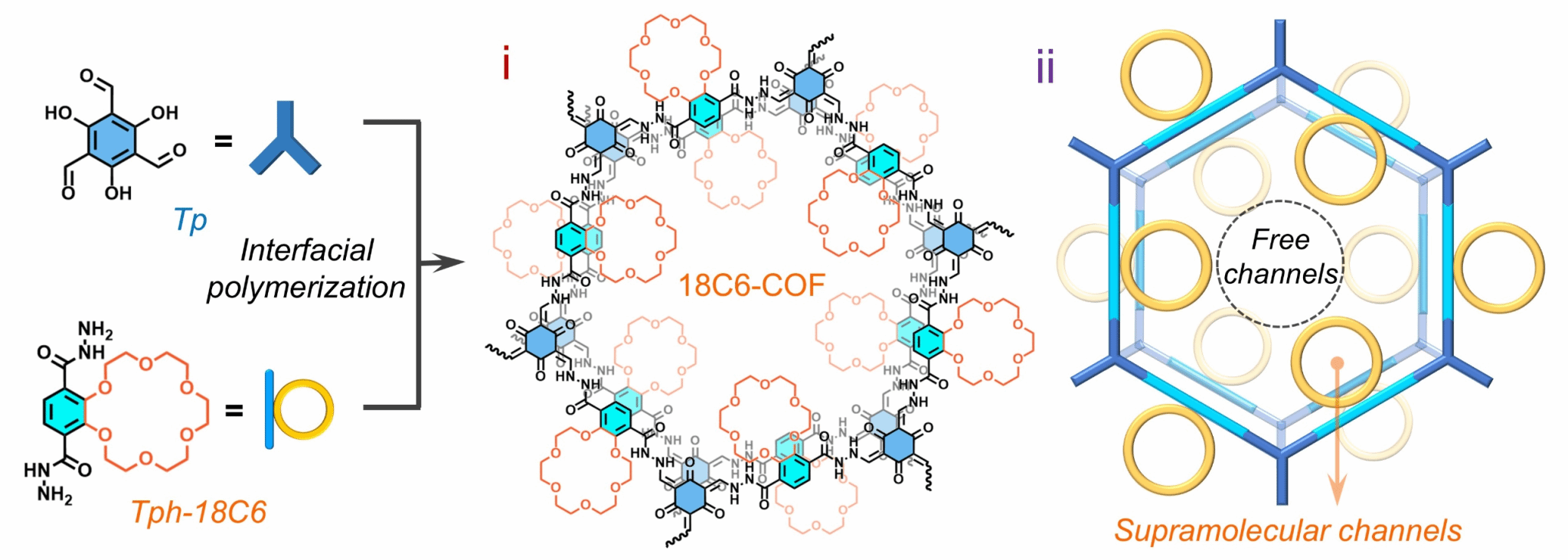 近日,我校海洋技术与装备学院光热海水资源利用团队针对传统膜材料在高浓盐水处理中普遍存在的分离机制失效和性能衰减难题,开发出新型超分子基离子分离膜(18C6-COF),率先实现高浓度(1 M)、多组分混合盐溶液中钾离子(K+)的直接高效分离。基于深入的材料表征与理论计算分析,研究团队创新性地提出了基于超分子识别作用的“双通道”分离机制,为破解高浓盐水环境下因离子竞争性传输、静电屏蔽等效应带来的离子精准识别能力差、...