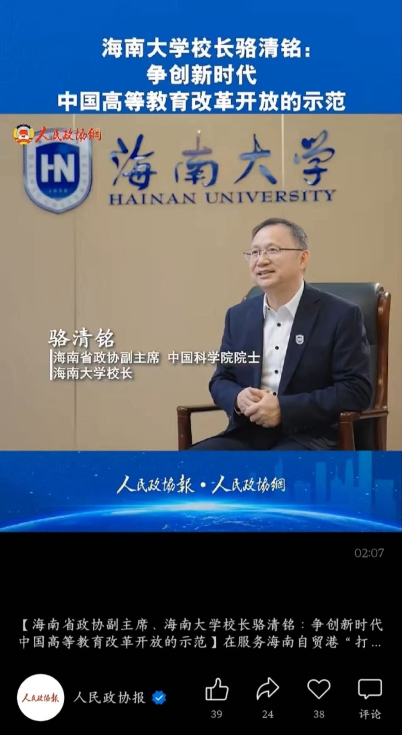 【人民政协报】海南省政协副主席、海南大学校长骆清铭:自贸港建设,海大责无旁贷