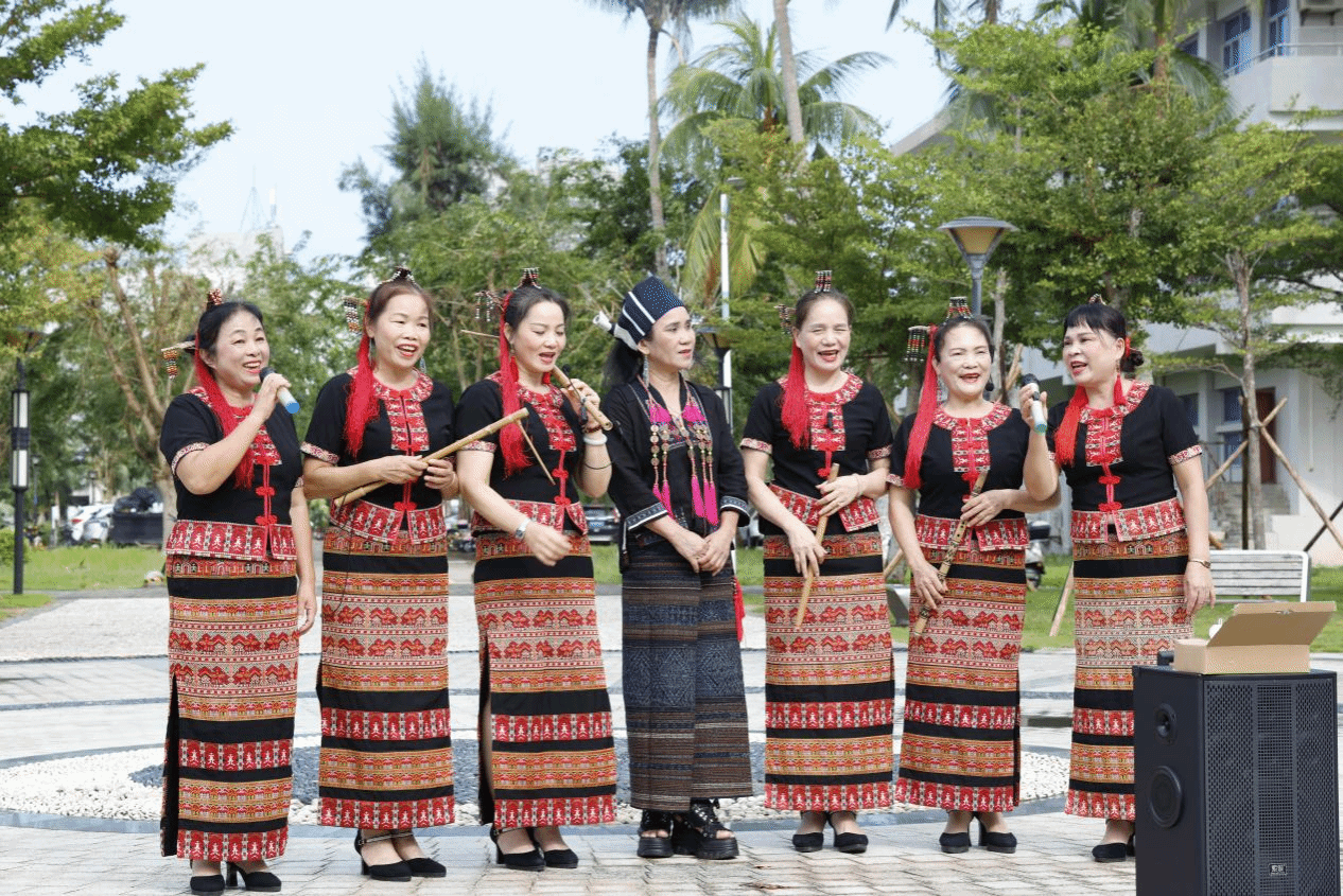 本站讯(记者 冯梦凡 高可贺)10月10日下午,海南大学青春记忆广场上,悠扬的黎族欧欧调民歌声声入耳。本学期首场“非遗进校园”特色课程——《非遗传承•黎族特色文化》人文通识课在此开课,七位来自黎族润方言、美孚方言和哈方言身着传统服装的民歌传唱人,为师生带来了一场沉浸式的文化体验课,让古老的非遗技艺在青春校园焕发新生。
