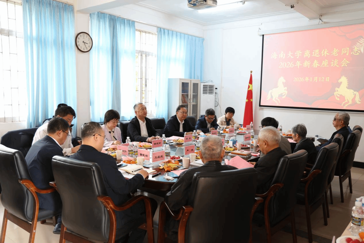本站讯(记者 程雪 陈思甜)1月12日下午,海南大学召开离退休老同志2026年新春座谈会。校党委书记李湖,党委常委和校领导张继友、杨志昕、胡景卫与退休老领导、老专家、老同志代表欢聚一堂,共迎新春、共话发展。
