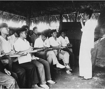 1958年招收的首届学生在茅草房中上课。海南大学档案馆供图职工建造茅草房。海南大学档案馆供图20世纪80年代实验教学用的显微镜。黄婷 摄■ 海南日报全媒体记者 黄婷走进海南大学档案馆(校史馆),一间仿真复原的茅草房伫立眼前。茅草房内陈设简朴,旧式桌椅整齐排列,上方“勤学、敬业、求实、创新”八个大字十分醒目。讲台上的电子屏幕里,一张黑白照片上,几名科研人员正专注地在显微镜前做着实验。这间茅草房与泛黄的老照片,不仅生动还原了海南大学“...