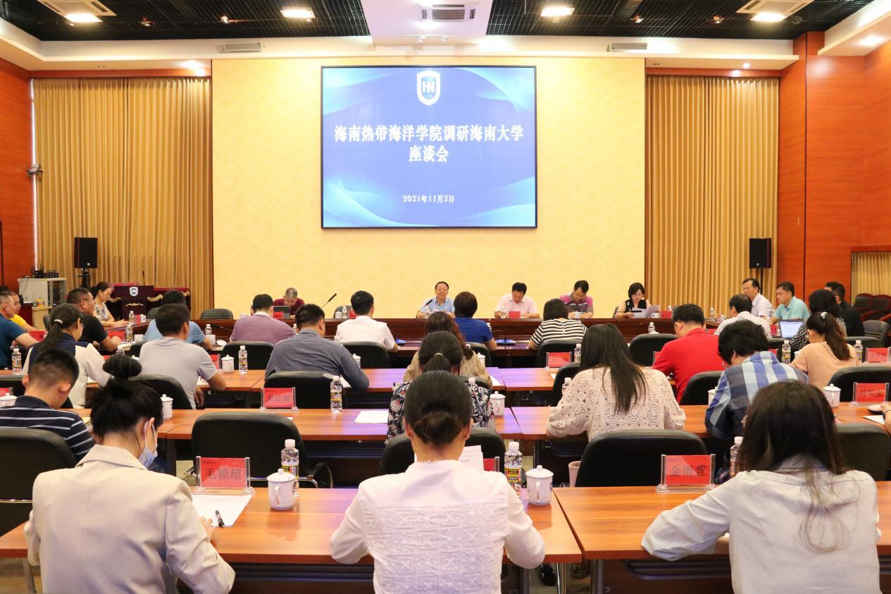 本站讯(记者 徐士闲 董澄和)11月1日至2日,海南热带海洋学院党委委员、副校长刘湘洪一行到海南大学调研,并在思源学堂多功能厅举行座谈会。海南大学党委常委、副校长王崇敏出席并主持会议。与会双方围绕党建“双创”工作、思想政治工作体系建设、思想政治和党务工作队伍建设、“三全育人”改革等内容进行了深入交流。刘湘洪一行还实地考察了法学院、外国语学院、机电工程学院、马克思主义学院和植物保护学院,详细了解了海南...