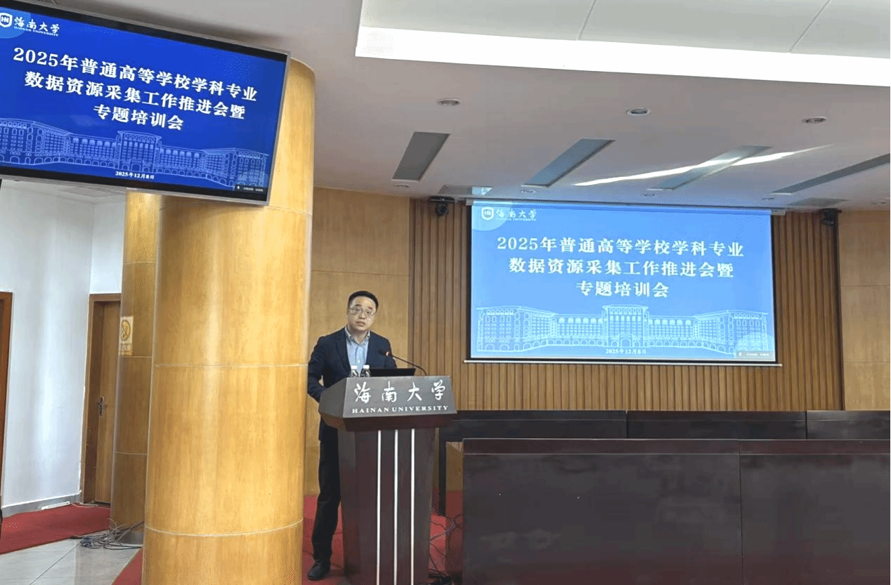 为深入贯彻落实教育部教育大数据建设相关最新部署,确保高标准、高质量完成 2025 年学科专业数据采集工作,12月8日下午,海南大学于办公楼一楼报告厅组织召开2025年学科专业数据资源采集工作推进会暨专题培训会。党委常委、副校长刘谦出席会议并部署工作。会议由本科生院教学质量评估中心主任罗洪峰主持。刘谦强调,普通高等学校学科专业数据既是教育部开展教育评估监测的核心依据,也是学校深化内涵建设、提升办学质量的重要支撑。...