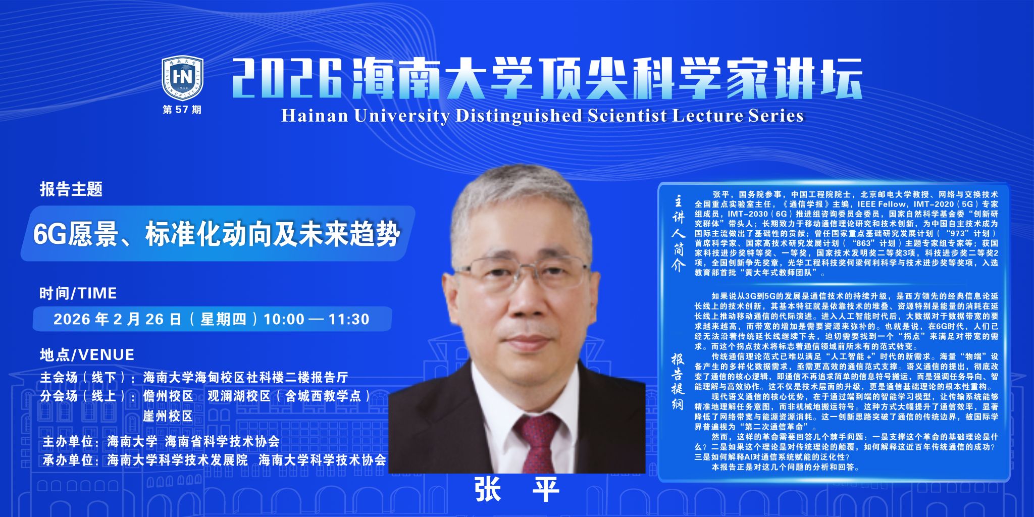 2026年海南大学顶尖科学家讲坛 第57期 6G愿景、标准化动向及未来趋势