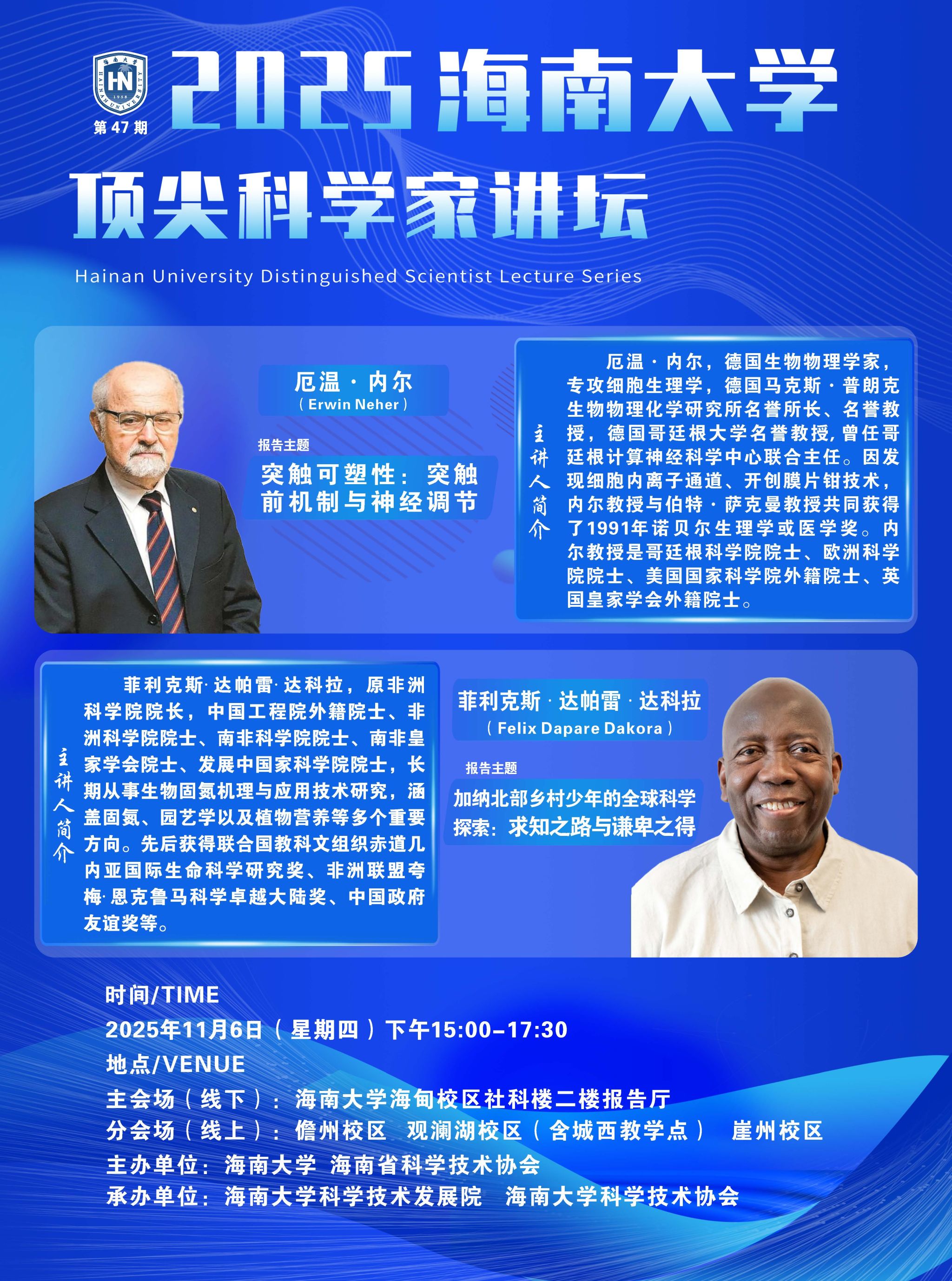 下一篇:2025海南大学顶尖科学家讲坛 | 重新定义成功:学术领导力之旅;横跨五大洲的昆虫化学生态学:一项贯穿学术生涯的研究计划