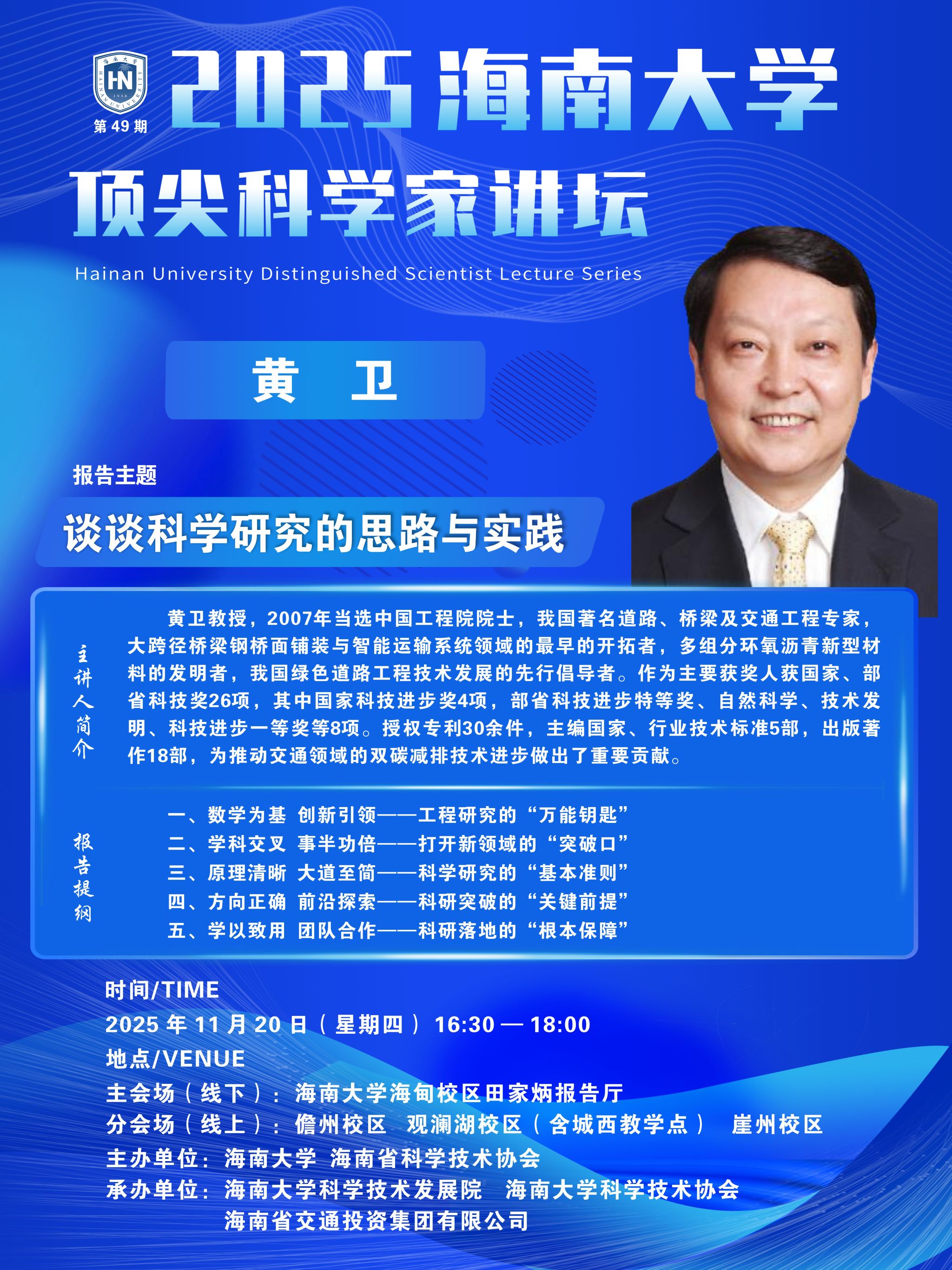 2025海南大学顶尖科学家讲坛 | 谈谈科学研究的思路与实践