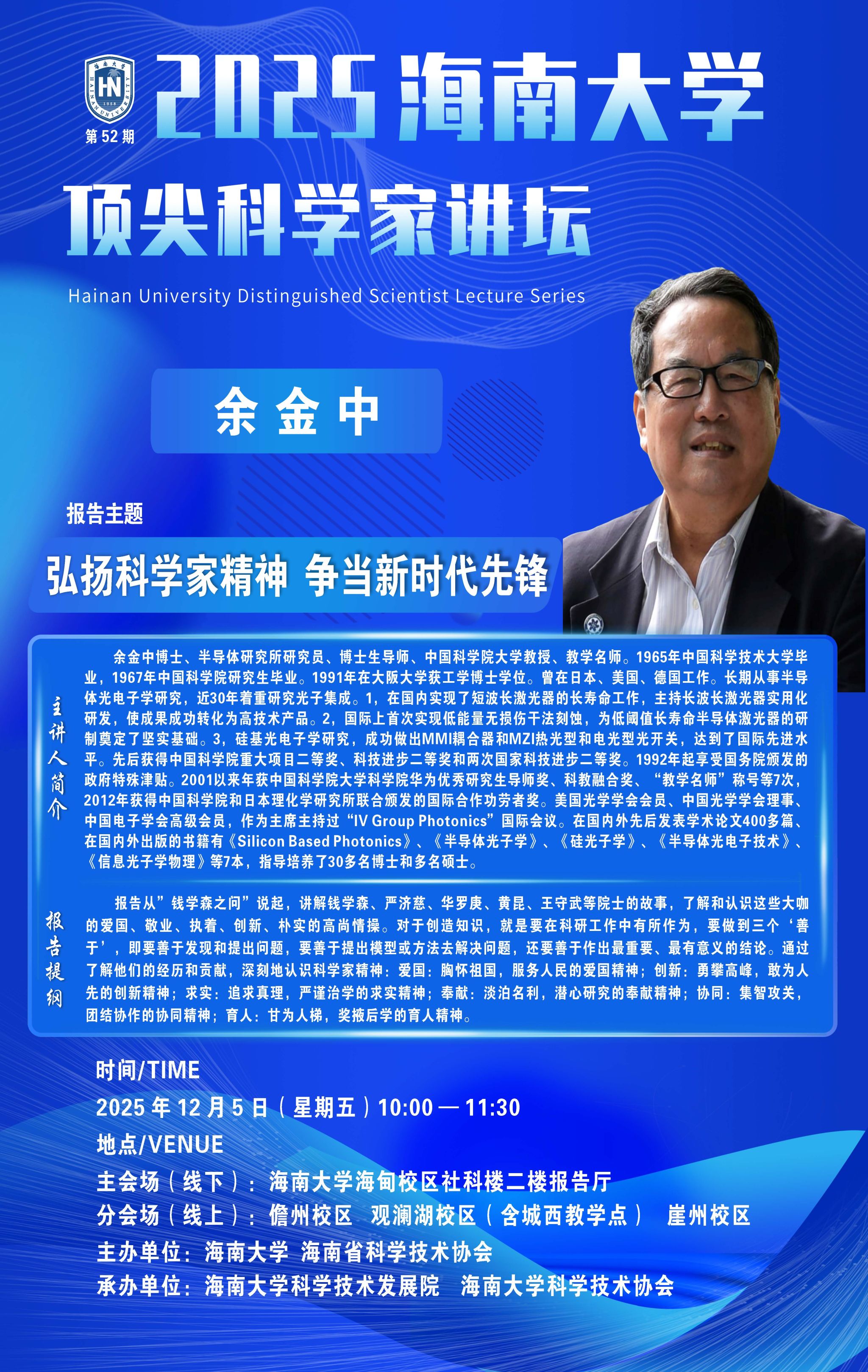 2025海南大学顶尖科学家讲坛 | 弘扬科学家精神 争当新时代先锋
